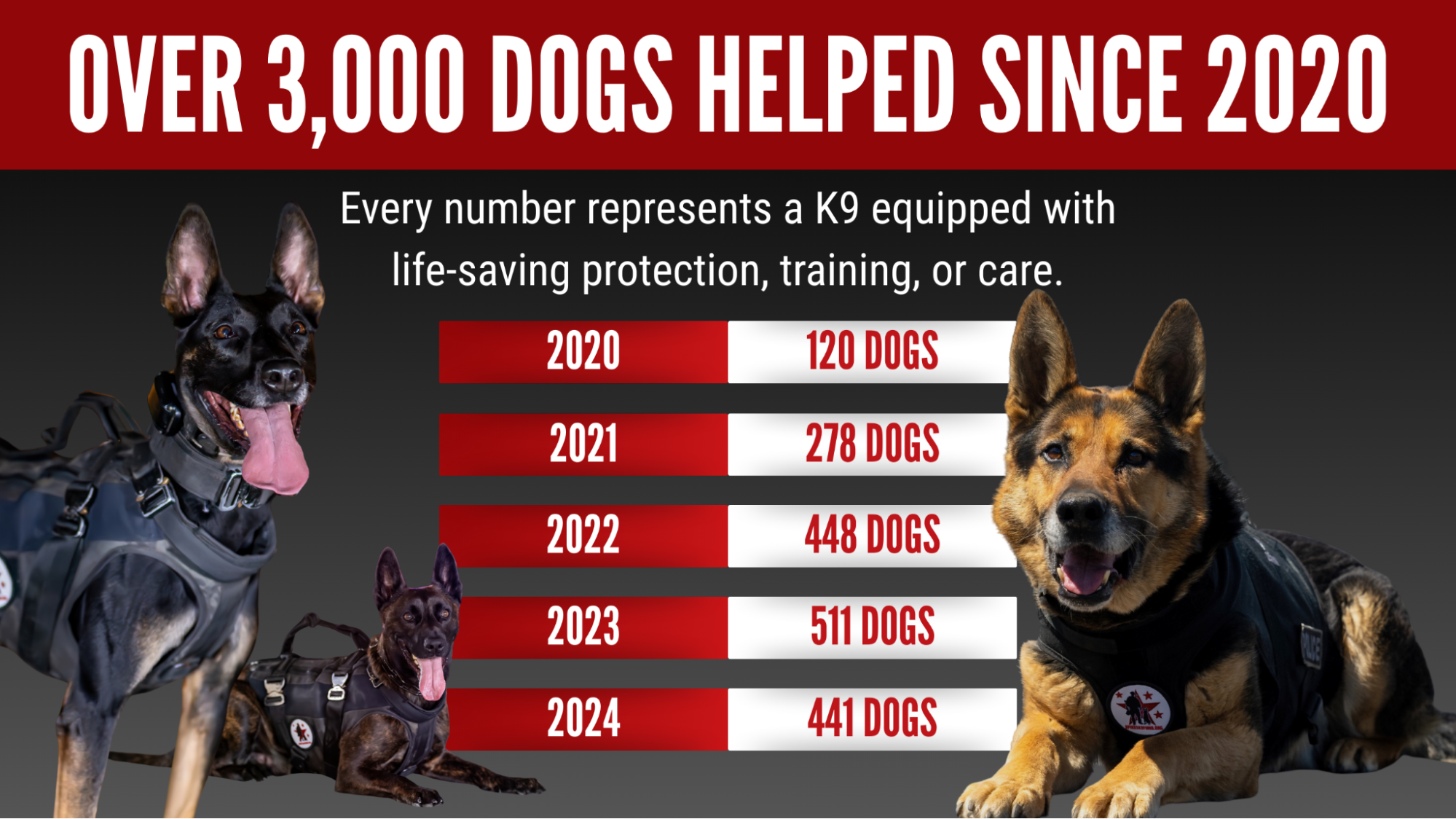 Your donation directly funds life-saving equipment and medical care for the dogs who serve and protect our communities.