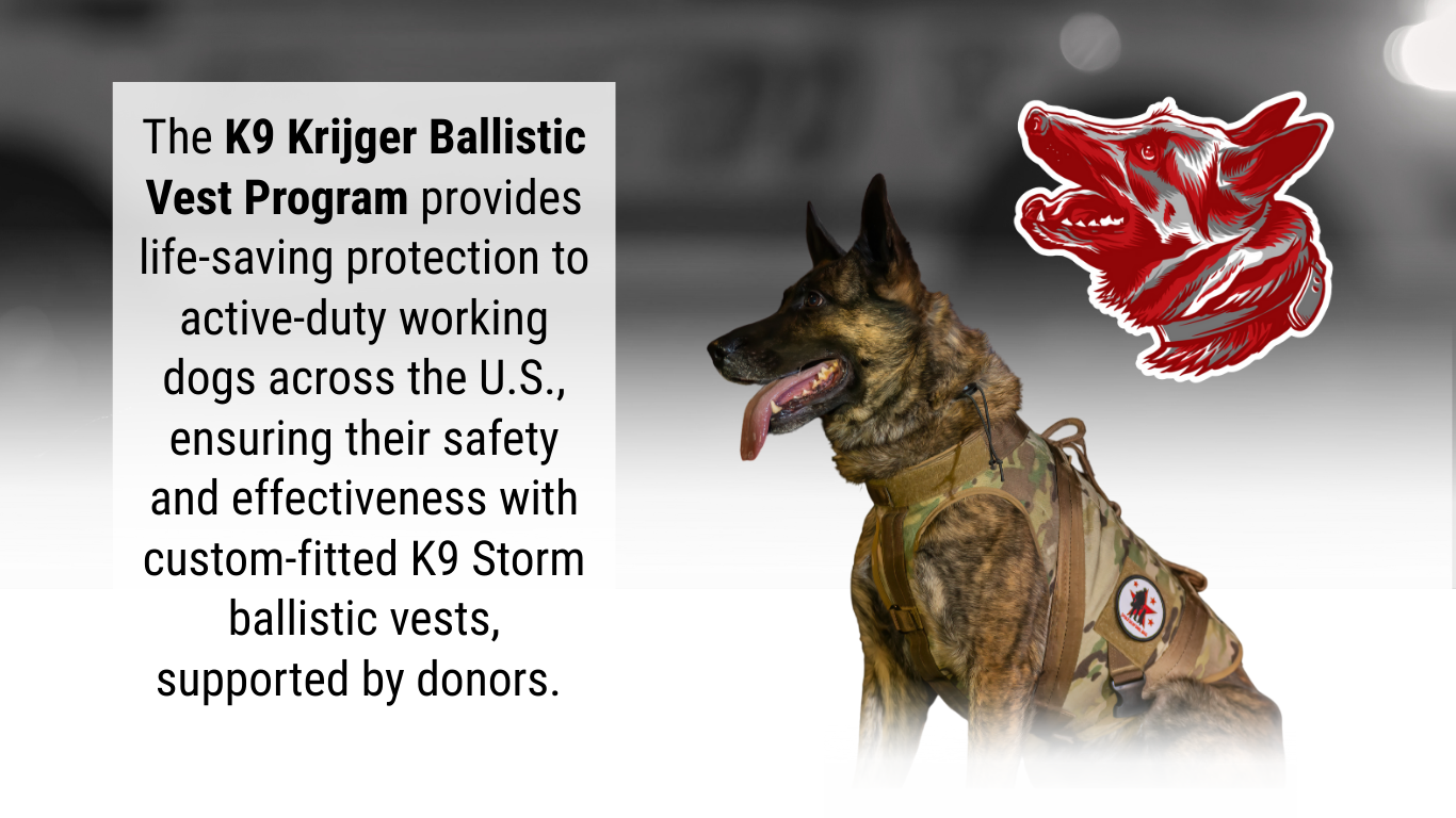 Every donation, store purchase, event attended, and conversation helps our nation's working dogs receive the protection and care they deserve.