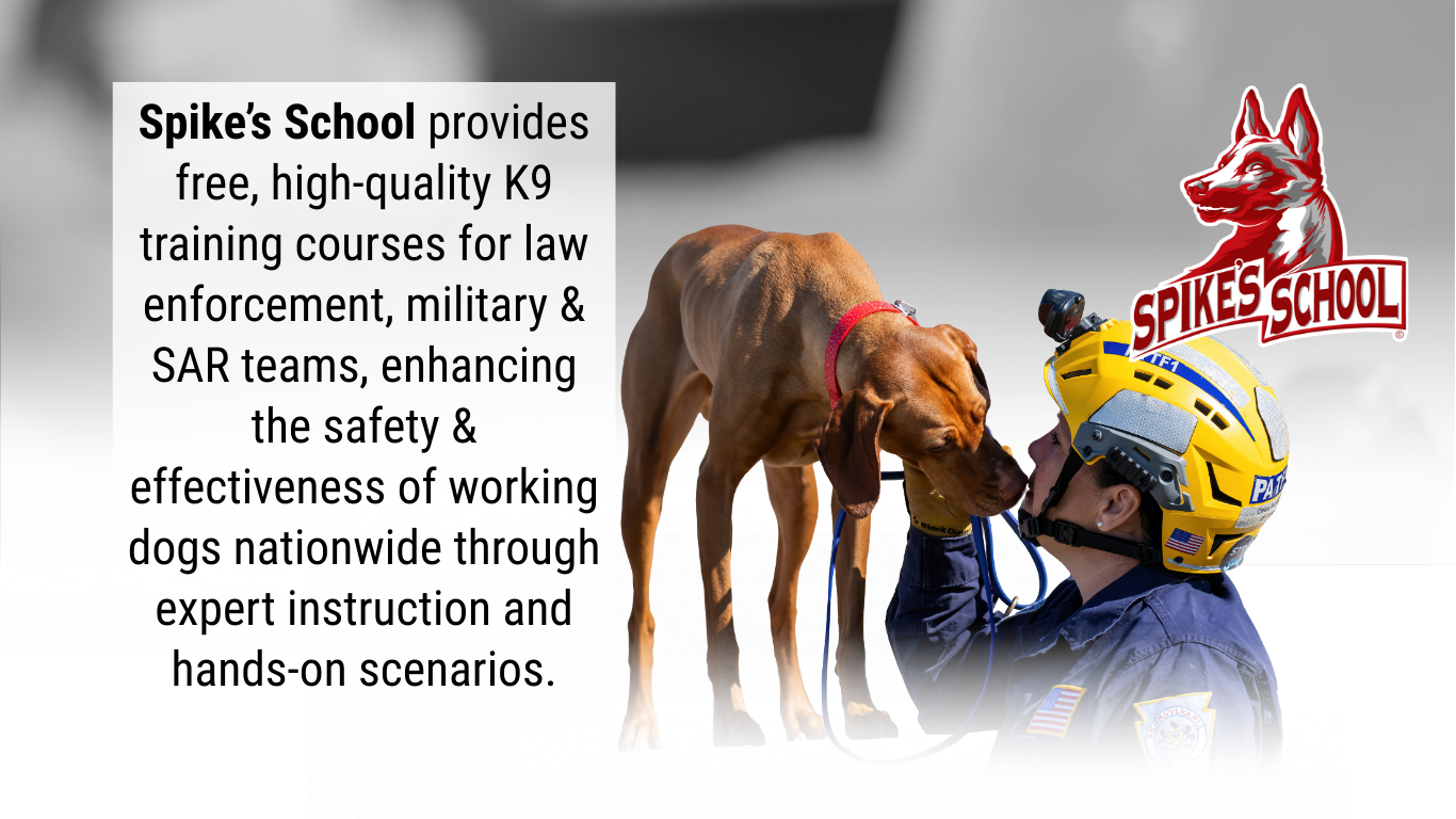 Spike's K9 Fund, with your support, provides custom-fit ballistic vests, protective equipment, medical cost assistance, and access to top-of-the-line training programs.